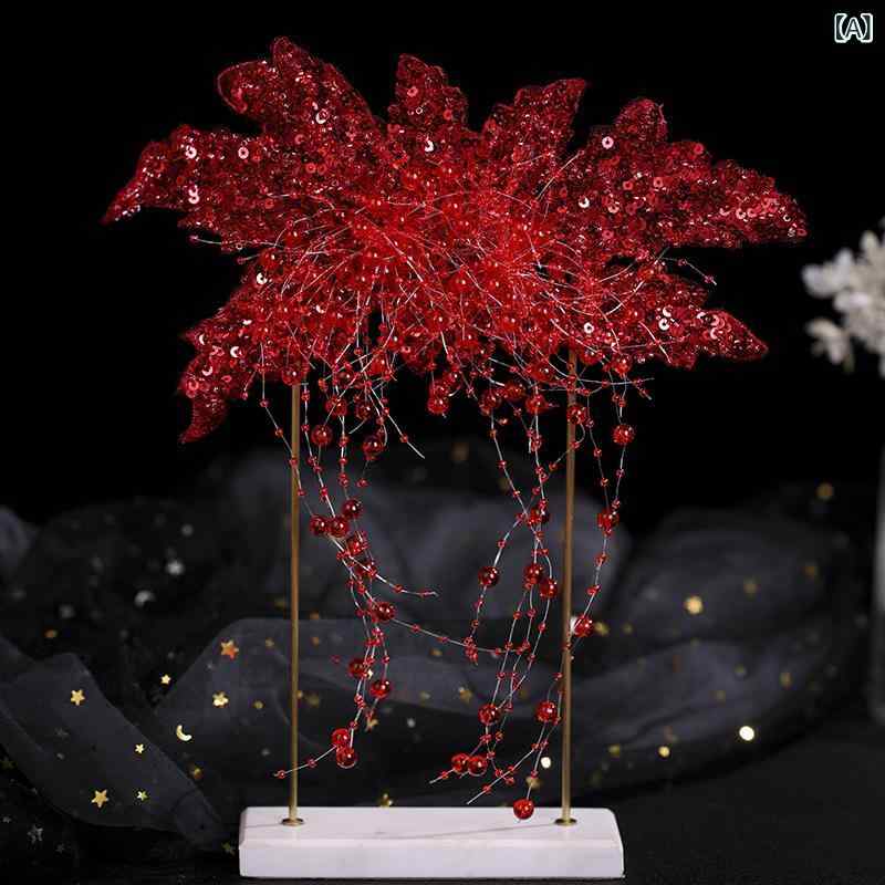 ヘアアクセサリー レディース 赤 手作り 水晶 スパンコール リーフ 髪飾り 結婚式 お呼ばれ チャイナドレス 披露宴 ヘアコーム・種類: ヘアバンド.ヘアアクセサリー・スタイル: レディース・造型: 葉・カラー: レッド・流行要素: パール.スパンコール.タッセル