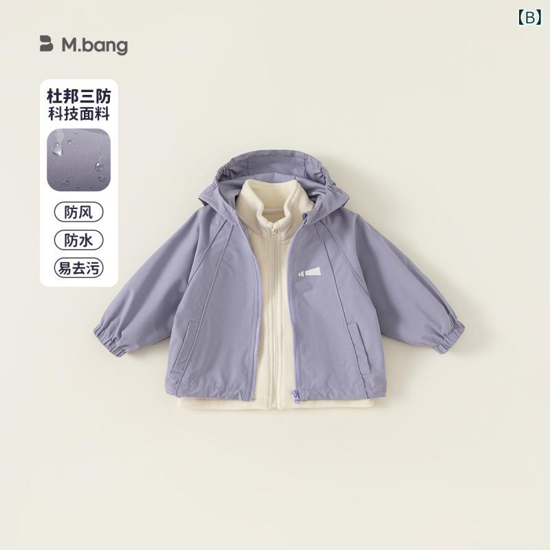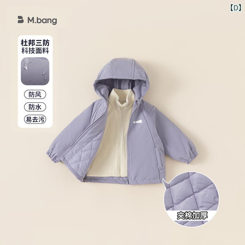 子供服 アウター 男の子 女の子 防風 フリース ジャケット パープル 三防 撥水加工 フード付き 秋冬