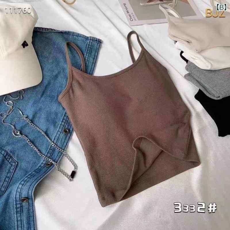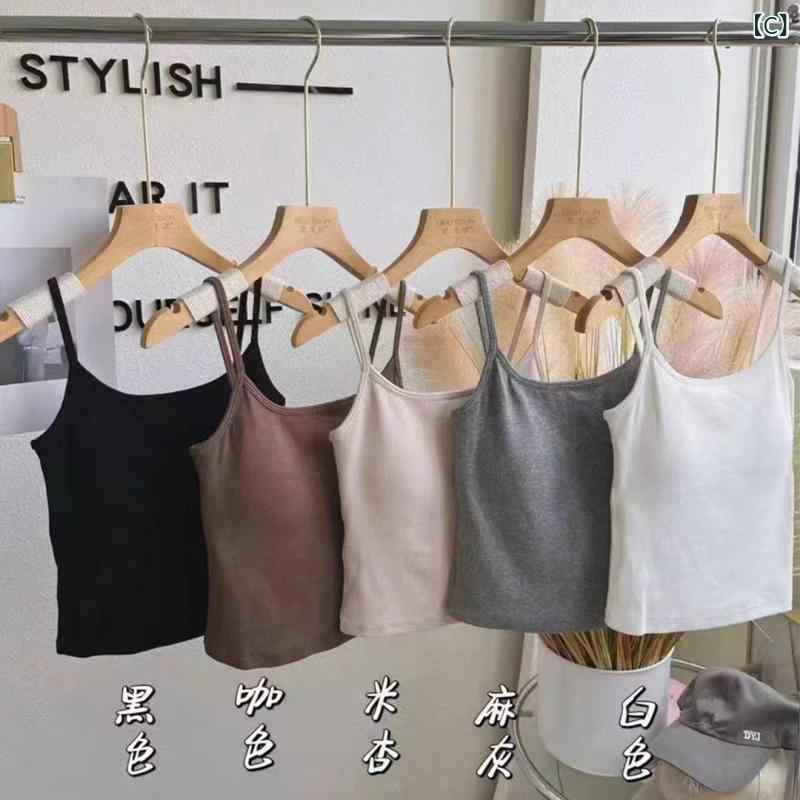 2タンクトップ レディース 春秋 胸パッド付き リブ インナー トップス ブラトップ カップ付き ショート丈 カットソー 重ね着 レイヤード