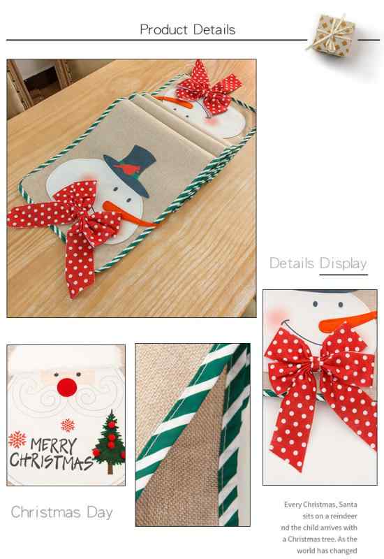 2テーブルクロス クリスマス 麻布 刺繍 ランチョンマット プレースマット 断熱マット 布製 飾り テーブルランナー・素材: 麻布・色: 黄・仕様: 老人款, 雪人款・適用節句: クリスマス