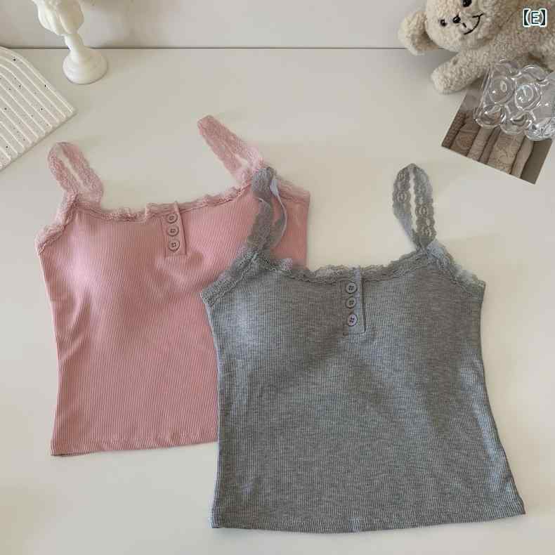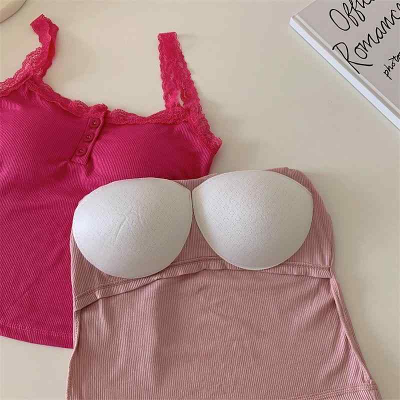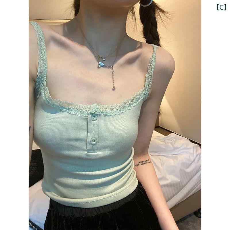 キャミソール レディース レース 接触冷感 ノースリーブ インナー トップス 部屋着 普段使い かわいい セクシー 背中開き ボタン