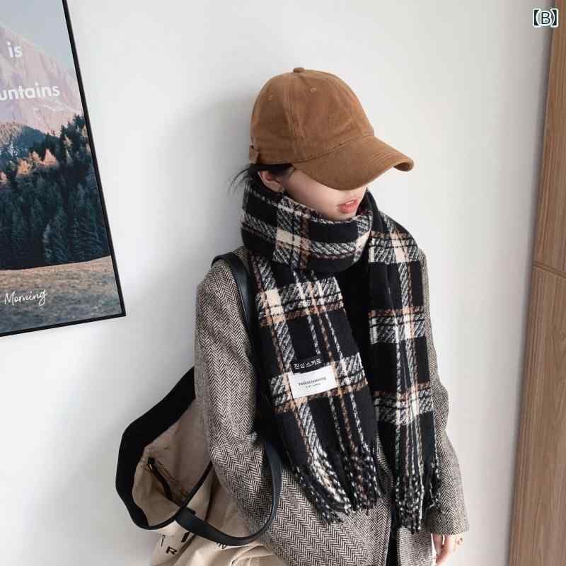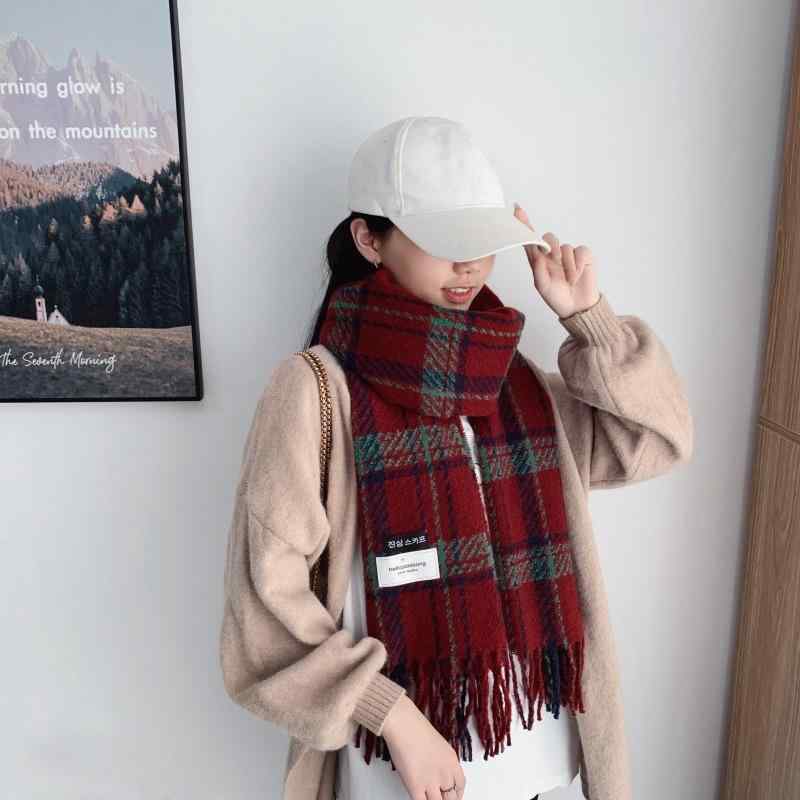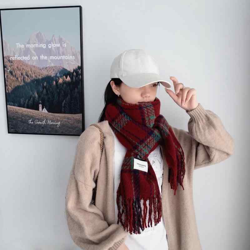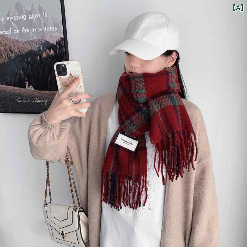 2マフラー レディース 秋冬 保温 柔らかい フェイクカシミヤ 格子柄 学生風 ネックウォーマー ショール ひざ掛け・機能: 保温・スタイル: INS風・カラー: レッド, ブラック, ベージュ・素材: ポリエステル繊維・サイズ: 185-65・長さ: 長さ197cm 幅65cm・編み方: 緯編・流行要素: 文字