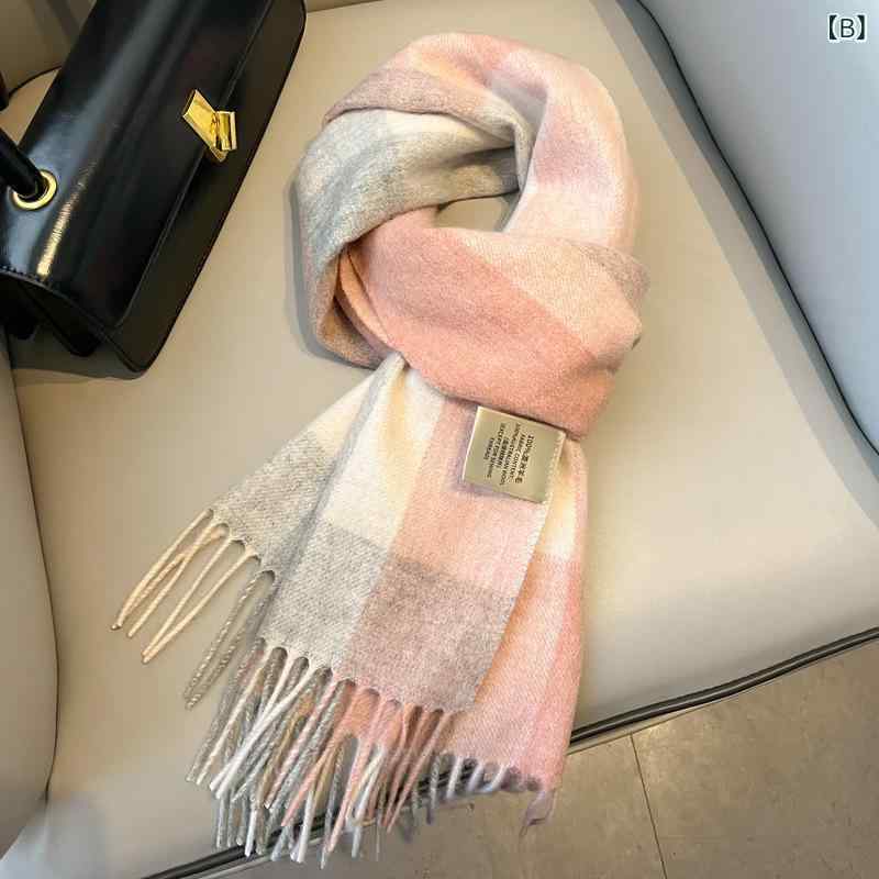 マフラー レディース 秋冬物 配色 格子柄 ストール ショール 暖かい ウールタッチ フリンジ付き 軽量 高級感