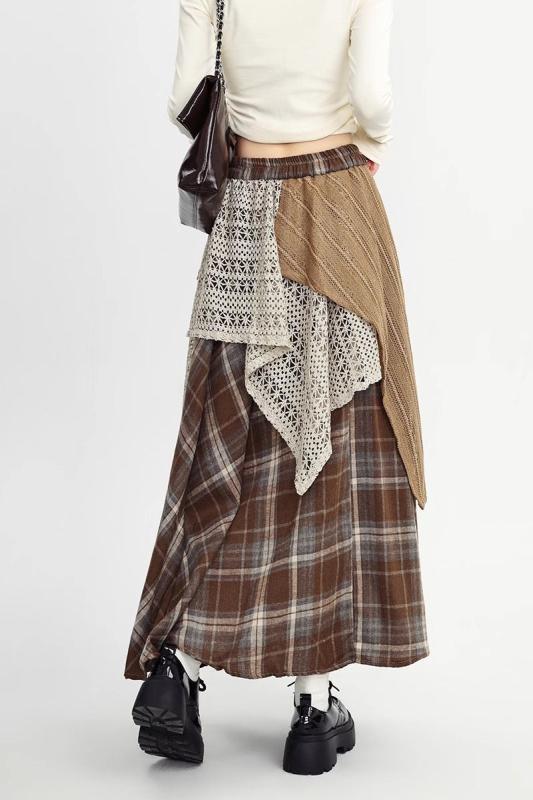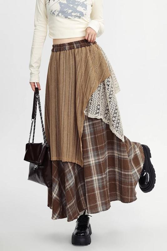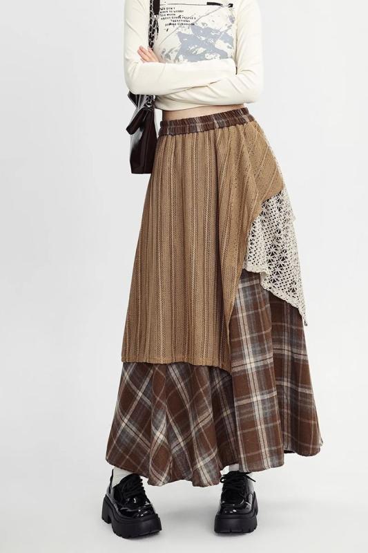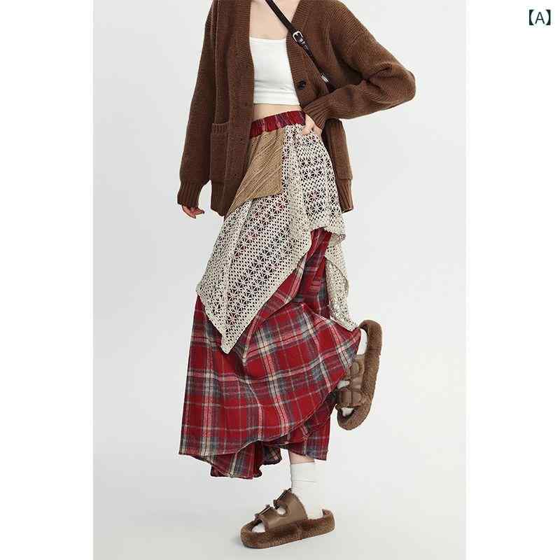 スカート レディース 秋冬 ハイウエスト チェック柄 毛織 不規則 大判 Aライン ゆったり かわいい 美脚効果 普段使い・工艺: 拼接・面料名称: 其它/涤纶(聚酯纤维)・主面料成分: 氨纶・主面料成分2: -・裙型: A字裙・裙长: 中长裙・流行元素: -・カラー: レッド, カーキ・サイズ: 均码・スタイル: 御姐风・裙类别: 半身裙・主面料成分含量: 90%-95%・风格: 私服名媛