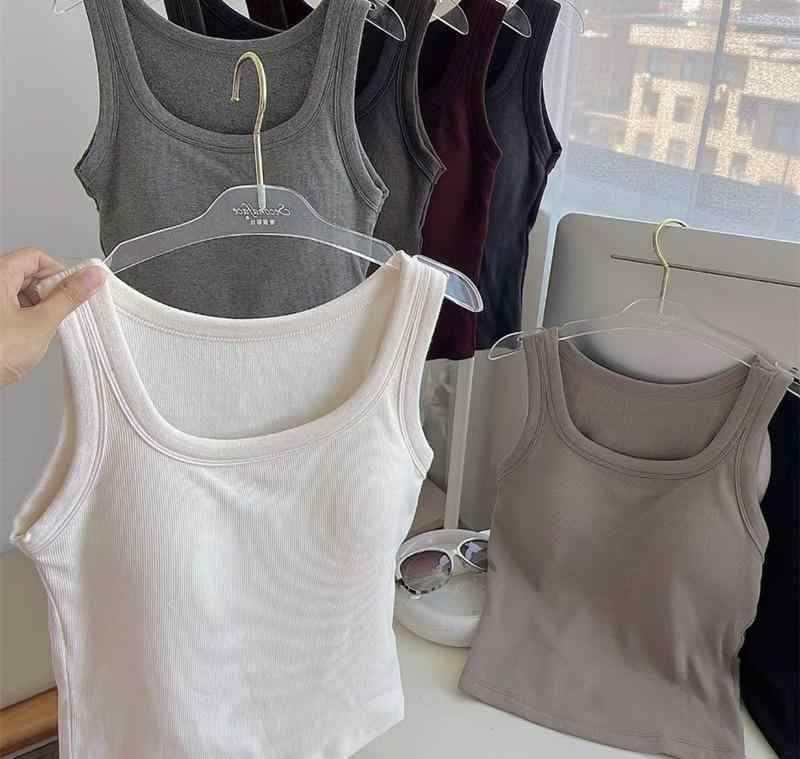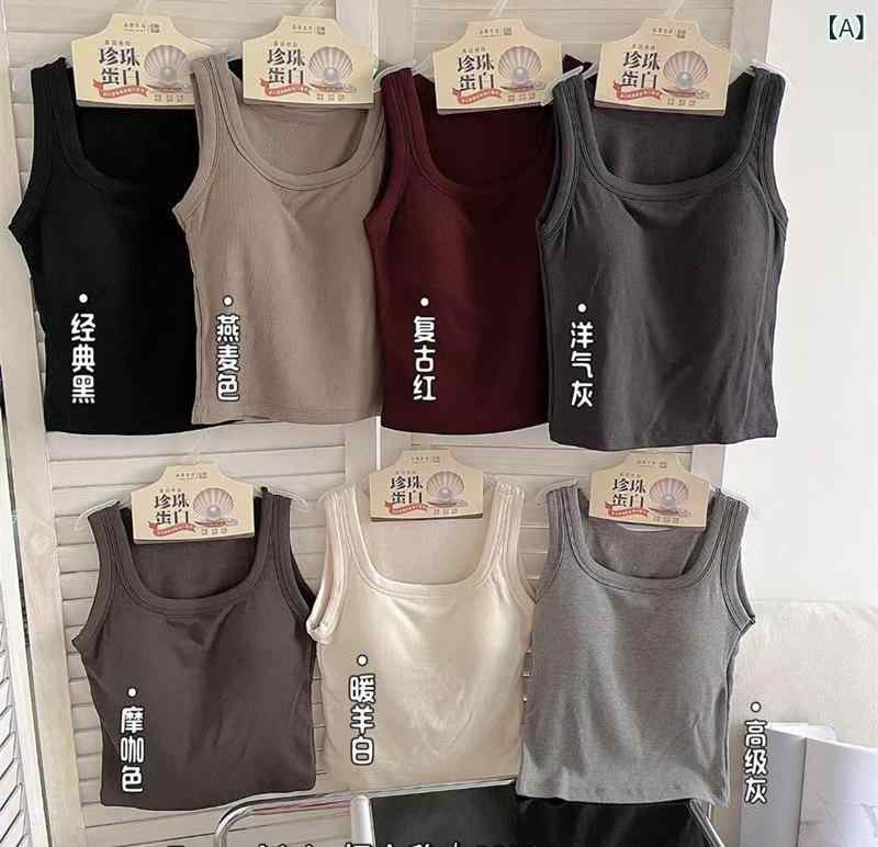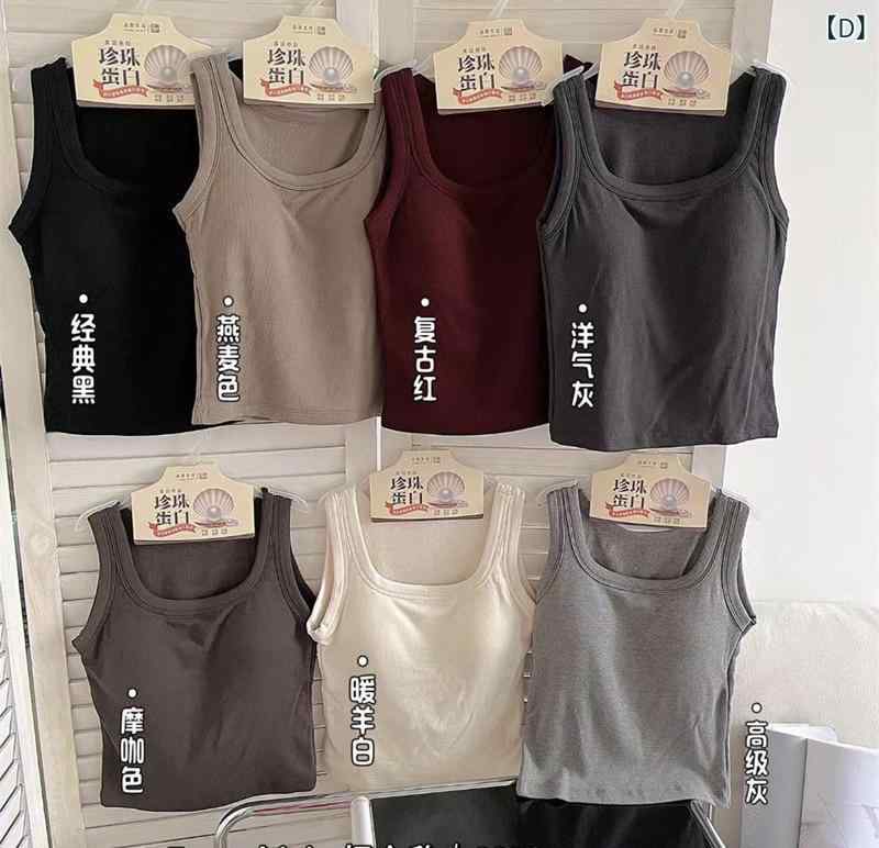 2タンクトップ レディース 秋冬 一体型 磨毛 修身 スクエアネック ストラップ リブ 美背 パール