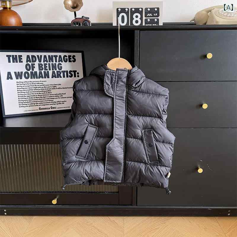 子供服 キッズ 韓国風 男女兼用 フード付き 中綿ベスト 防寒 チョッキ あったか 秋冬・性別: 男女兼用・スタイル: 韓国版・対象年齢: 中小キッズ(3~8歳、100~140cm)・生地: 柔らかい・デザイン: カーディガン・柄: 無地・厚さ: 厚手・フード: フード付き・実写有無: モデルなし・在庫: 在庫あり・要素: イギリス風, トレンド, 欧米・針数: 12~14針/3cm・糸くず処理: 処理済み・生地名: ポリエステル100%・主な生地の成分: ポリエステル繊維・主な生地の成分含有量: 100%・安全レベル: B類・クロージング: ジッパー・詰め物: ポリエステル・カラー: ブラック・身長: 90cm, 100cm, 110cm, 120cm, 130cm, 140cm, 150cm・襟の形: スタンドカラー・製品カテゴリ: 子供用ベスト
