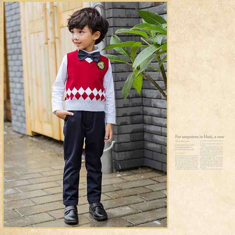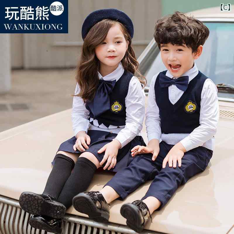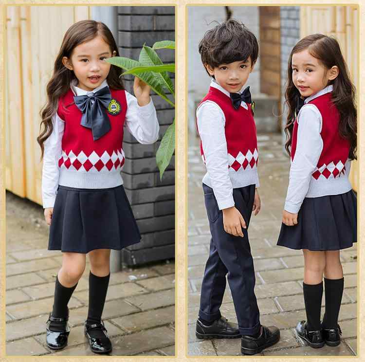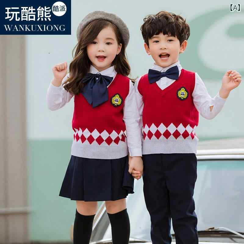 キッズ ニット セットアップ イングランド風 小学生 スクールユニフォーム 幼稚園 制服 リボン ブローチ付き
