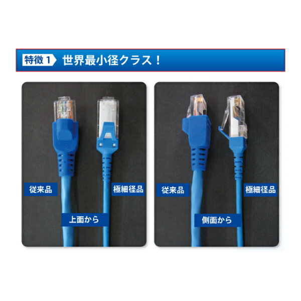 外形3.1mmのとても柔軟な撚り線4対LANケーブルです。 ■ 特長 ●岡野電線社 極細LANケーブルです。 ●標準外径3.1mmの、4対LANケーブルとしては世界最小径ケーブルです。 ●外径44%DOWN、断面積70%DOWN (いずれも当社比) ●とても柔軟です。 ●専用RJ45プラグ、専用スリムブーツ付きでご提供します。 ●爪割れ防止機能付きです。 ●ギガビットイーサネット(1000BASE-T)、ATMなどの超高速LANに対応します。 ●環境に優しいRoHS基準に対応しています。 ■ プラグ・ケーブル・カラー ・プラグRJ45オス/RJ45オス ・ケーブル:5.0m/太さ3.1mm/ストレート結線 568B/AWG 28/難燃性 JIS C3005 ・カラー:青 ※お使いのモニターの発色具合によって、実際のものと色が異なる場合がございます。 ■ 出荷日 通常在庫品です。決済確認後即日または翌営業日までに出荷いたします。