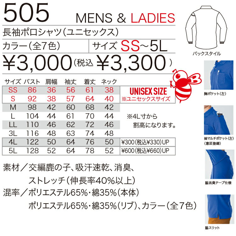 商品説明 BURTLEの長袖ポロシャツです。 サイズ:SS S M L LL 3L 4L 5L カラー:ネイビー ホワイト ブラック ロイヤルブルー キャメル サーフブルー ミドルグレーおしゃれ人気のワークウェア バートル BURTLE製 半袖や長袖のバリエーションが豊富ブルゾン・ジャケット・コート・ジャンパー・シャツ・ベストなどなど 。お気に入りの商品を多数ご用意!!桑和・自重堂・アシックス・TSDesign・BURTLE・EVENRIVER・ATACKBACE・空調服・防寒・エアークラフト・春夏対応・秋冬対応など多数取り揃えております。商品の詳細については画像をご参照ください。 お届けについて ご注文確認後、2~3営業日で出荷致します。 お届け日のご要望がある場合は、お電話・メールにてお気軽にご相談ください。 出来る限りご対応致します。金額が記載された明細書を同梱いたします。プレゼント等で明細書が入ると困る場合は別途お問合せ窓口までご連絡ください。 ご注意点 ・お使いのPCモニターによって、カラー表現が変わって見える場合がございます。 ・万が一弊社在庫分に、不良や欠品があった場合は、メーカー取り寄せとなり納期が変更となる場合がございます。 ・在庫切れにより商品のご用意が難しい場合は、別途ご連絡致しますので予めご了承くださいますようお願い致します。サイズはこちらのページのみです。