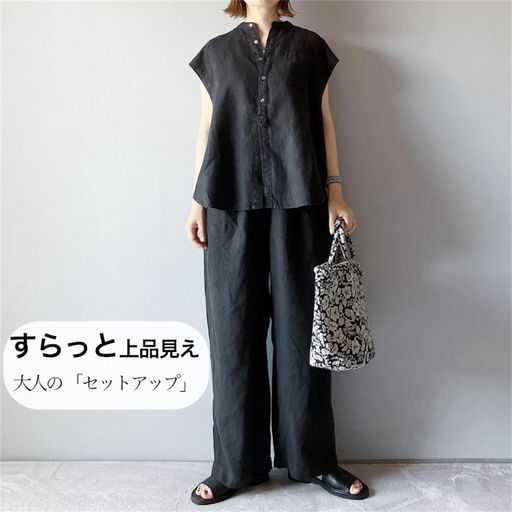 [DYIOPMFGZ]レディースパンツスーツブラウスストレートパンツワイドパンツセットアップロングパンツTシャツ2点セット上下セットカジュアルウェアフレンチ袖無地フリル落ち感シンプルか…