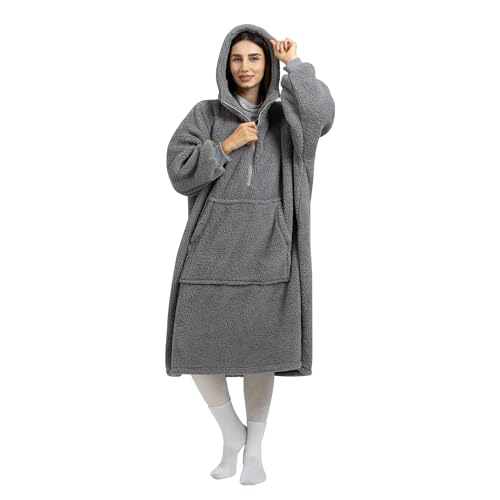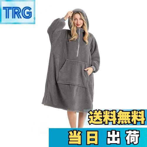 【送料無料】[Winthome] 着る毛布 ロング丈 ルームウェア ジッパー付き 部屋着 全身カバー ゲーミング 裏起毛シープボア もこもこ 軽量 保温 フード ポケット付 ガウン 大きいサイズ 防寒対策 エコ メンズ レディース