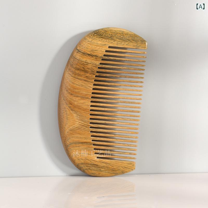 櫛 男女兼用 緑檀木 頭皮マッサージ 粗目 コーム 厚手 天然木製 高級感 ヘアケアブラシ 血行促進 リラックス プレゼント