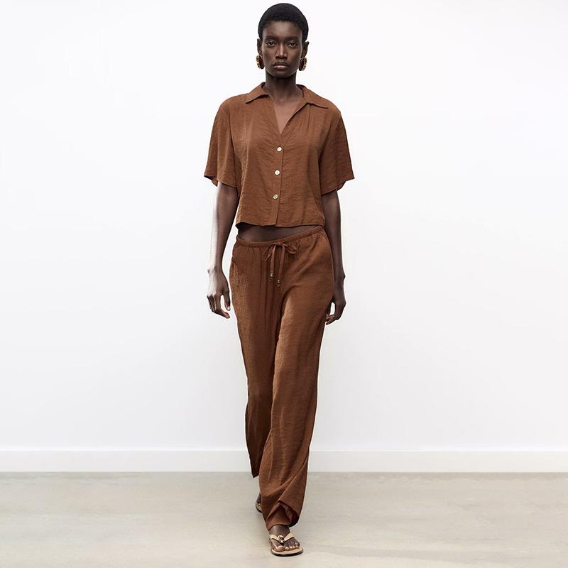 セットアップ レディース 春夏 7分袖シャツ パンツスーツ 綿麻風 カジュアル 無地 リネン ワイドパンツ 上下セット ルームウェア 部屋着
