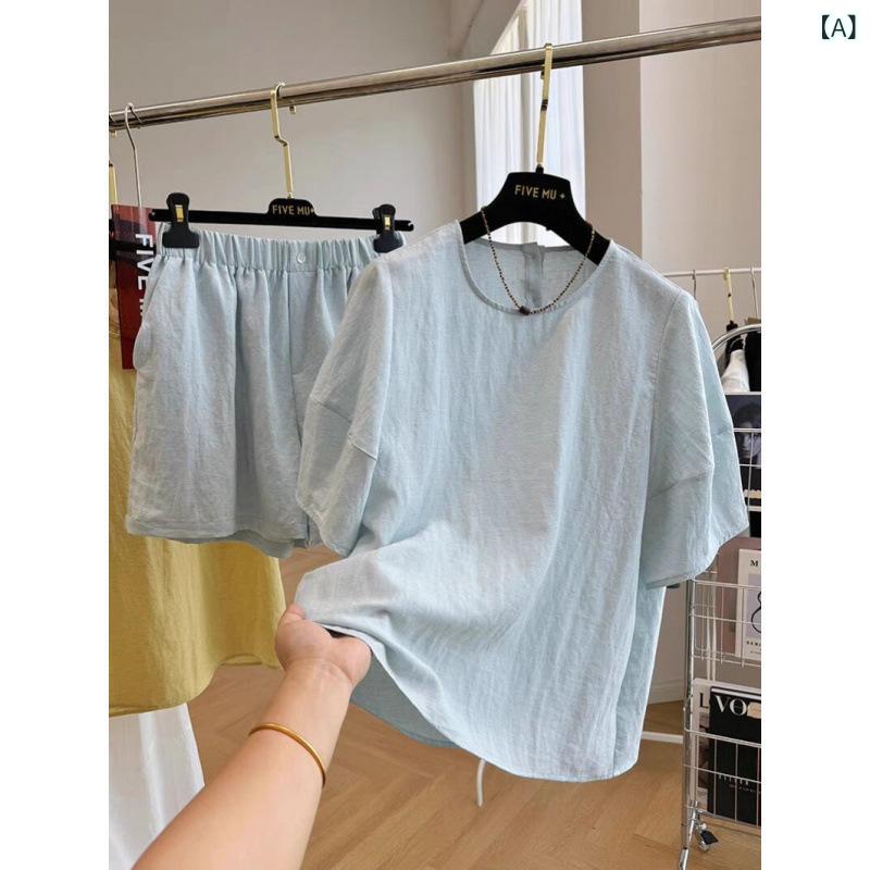 セットアップ レディース 薄手 半袖トップス ショートパンツ 上下 2点 セット 綿 快適 浅葱色 黄色 普段使い リラックス ウェア