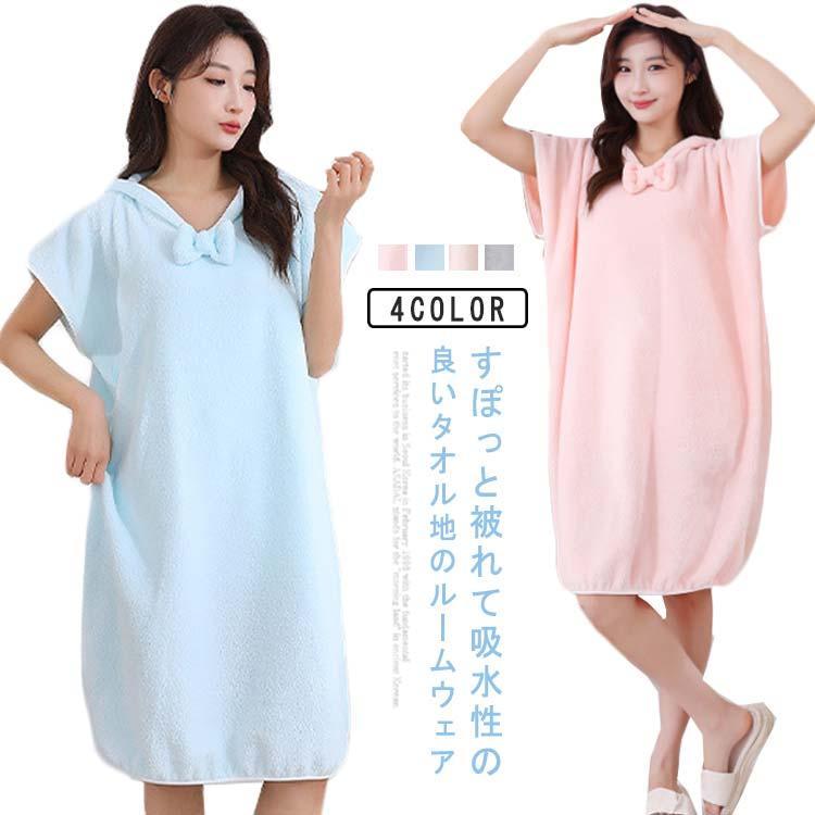 【P2倍!2499円→実質2449円 12/11 01:59まで】着るタイプのバスタオル レディース タオルワンピース タオルワンピ フード付き パジャマ 半袖 ルームウェア お風呂上がり 湯上り かわいい 妊婦 マタニティウェア 温泉 プール バスローブ