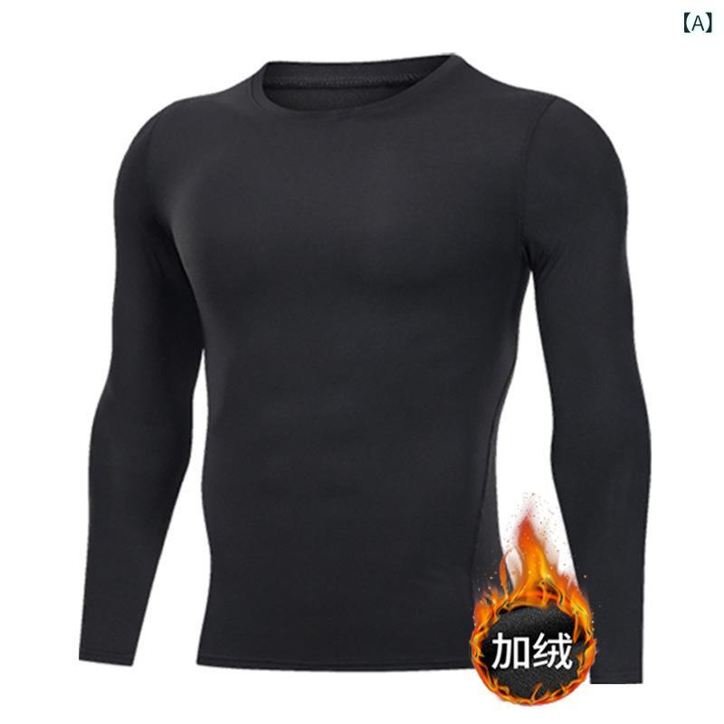 スポーツウェア メンズ 男性用 タイツ 秋冬 ランニング バスケットボール 伸縮性 裏起毛 暖かい 長袖 アウトドア トレーニング アンダーウェア フィットネスウェア ポリエステル ブラック 黒