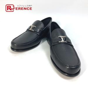未使用 LOUIS VUITTON ルイヴィトン メジャーライン 靴 ビジネスシューズ 革靴 LV ローファー ブラック メンズ【中古】