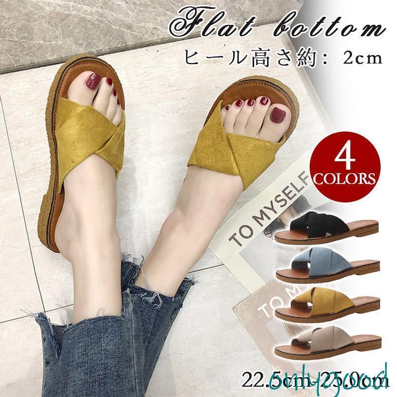 スリッパ ぺたんこサンダル レディース フラット クロスストラップサンダル コンフォート ビーチサンダル スエド調 ルームウェア 外出