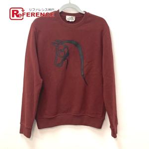 HERMES エルメス ホース レザーパッチ シュバル 馬 スウェット トップス 長袖 アパレル トレーナー コットン ボルドー系 メンズ【中古】