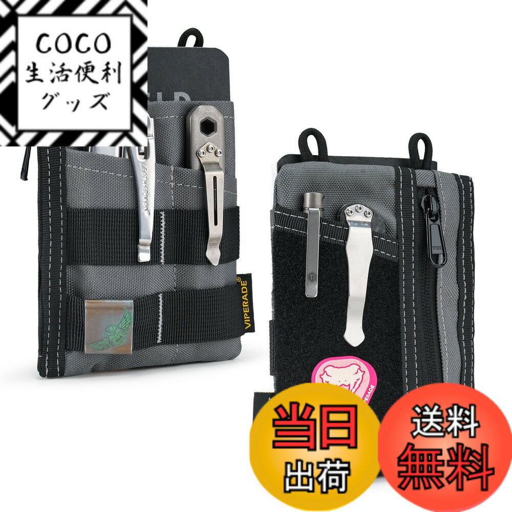 ERADE VE18 EDCポーチ メンズ ポケットオーガナイザーポーチ EDCポケットオーガナイザーポーチ 3つのスロット ジッパーポケット2つ ベルクロポーチ マルチツールポーチ 色:グレー
