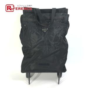PRADA プラダ トライアングルロゴ 三角ロゴ プレート 折り畳み 車輪付き スーツケース キャリーバッグ ブラック レディース【中古】