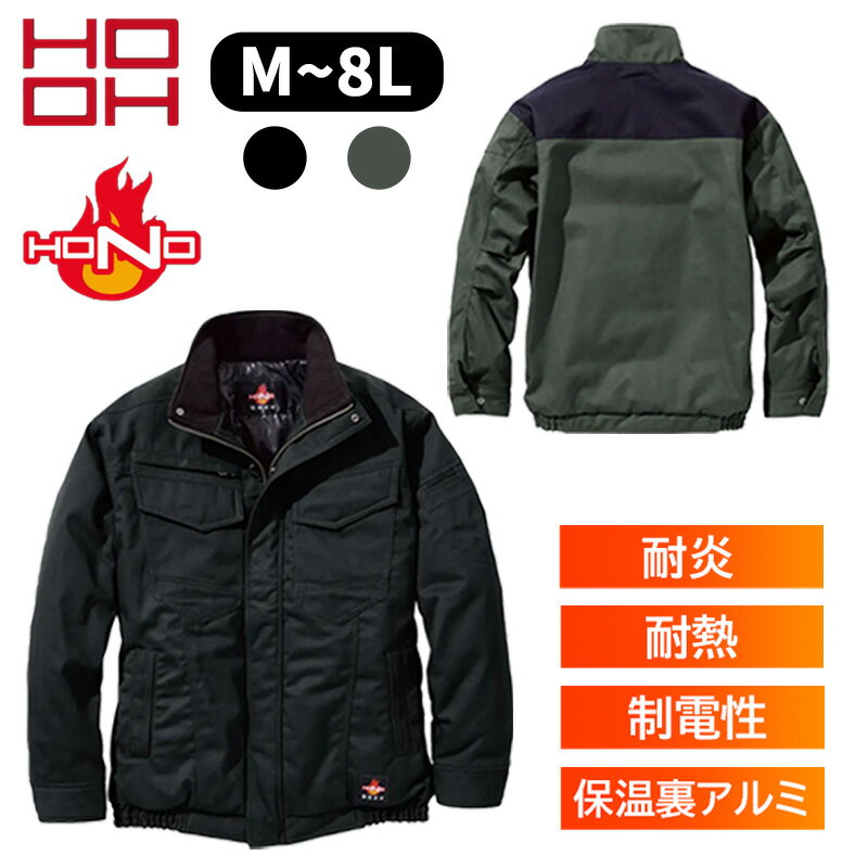【HOOH】 難燃防寒ブルゾン 4233 ブラック カーキー 黒 M~8L 秋 冬 難燃素材 耐炎 耐熱 制電性 保温裏アルミ 防寒 作業 アウトドア 暖かい 上着 アウター ウェア ブルゾン 現場 作業服 安全 火