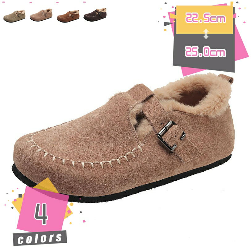 スノー シューズ レディース 冬用 革 2024冬 暖かい 厚手 ファー 付き フラット シューズ レディース アウトドアウェア つま先 閉じた ハーフ スリッパ