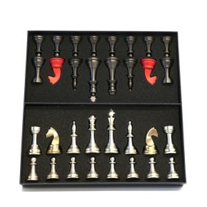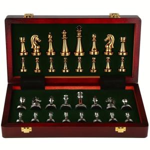 チェスセット エレガント 駒 亜鉛合金製 折り畳み 収納 おしゃれ 盤 無垢材 木製 持ち運び チェス ゲームボード ゴールド シルバー 4-7
