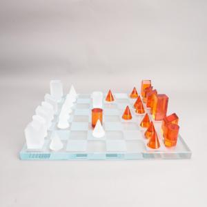 モダンチェスセット オブジェ デザインチェス クリスタル風 インテリア雑貨 ホワイト オレンジ ブラック ギフト アートボード 幾何学 ガラス調 置物 装飾品