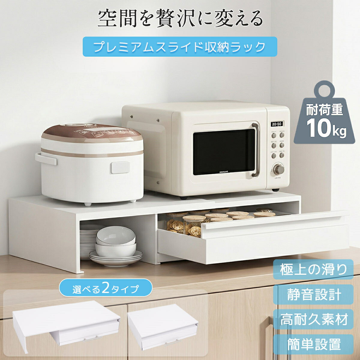 【10%OFFクーポンで最安5,202円〜】スライドテーブル 電子レンジラック レンジ台 収納ラック 家電下引き出し トレー レンジ下台 トースター 置き台 炊飯器 収納 レンジテーブル レンジ下 引き出し付き 伸縮可能 スライド スリム スライドトレー 省スペース シンプル