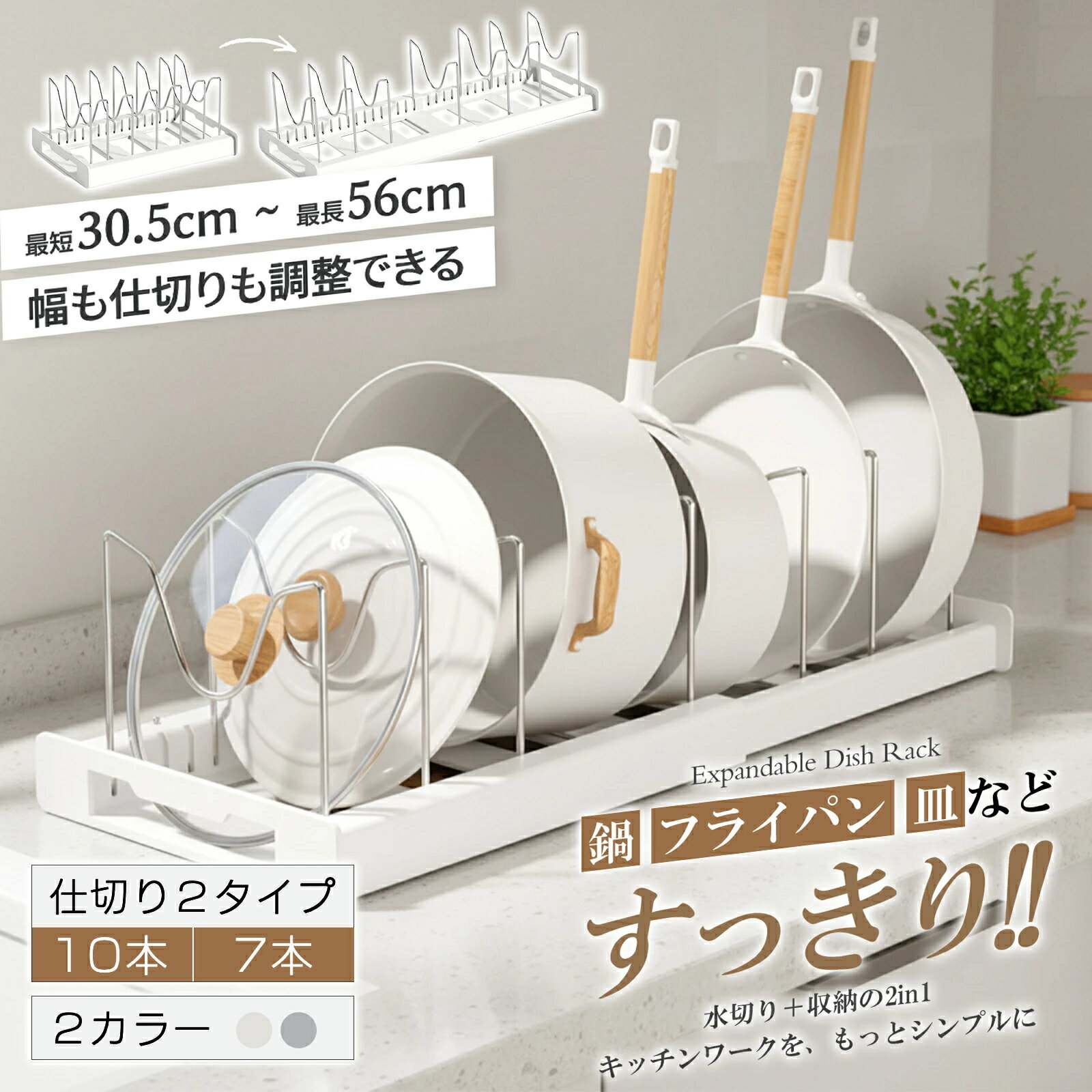 フライパンスタンド 伸縮フライパンスタンド 伸縮式フライパンラック フライパン収納 フライパン置き 鍋スタンド 鍋蓋スタンド 調理器具 収納 整理 整頓 シンク下 立てる 引き出し 長さ調整 伸縮 収納ラック 食器 鍋 蓋 ふた 仕切り