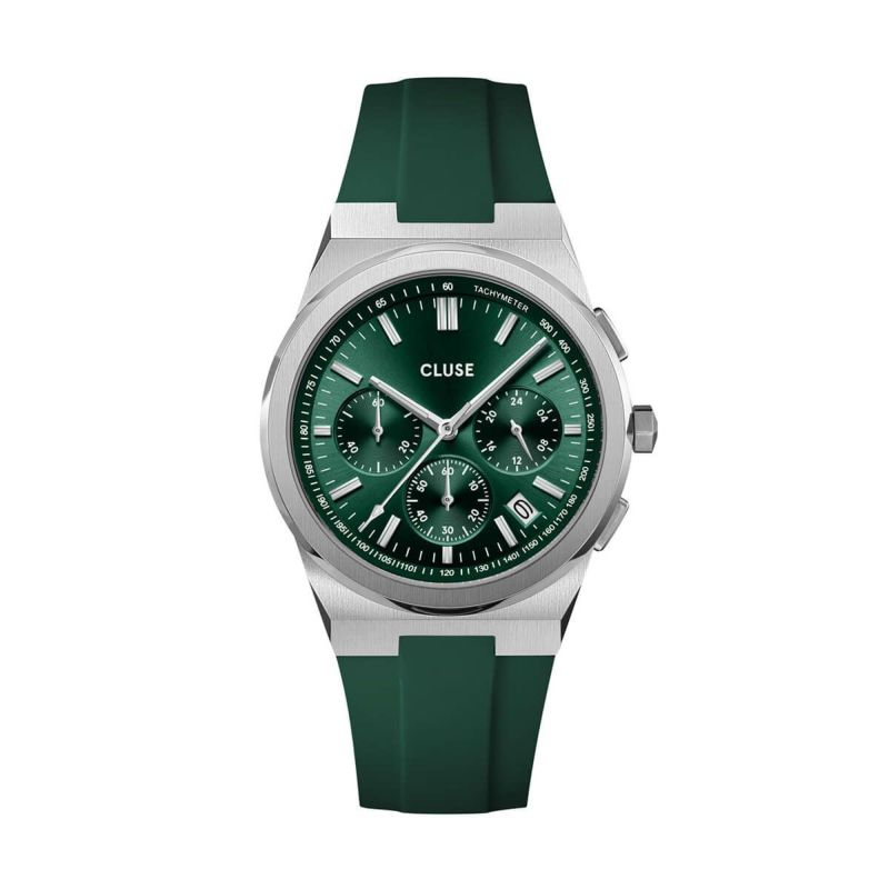 正規品 CLUSE クルース 腕時計 メンズ Vigoureux Chrono ヴィグルー クロノグラフ グリーン シルバー ラバーベルト cw 20808