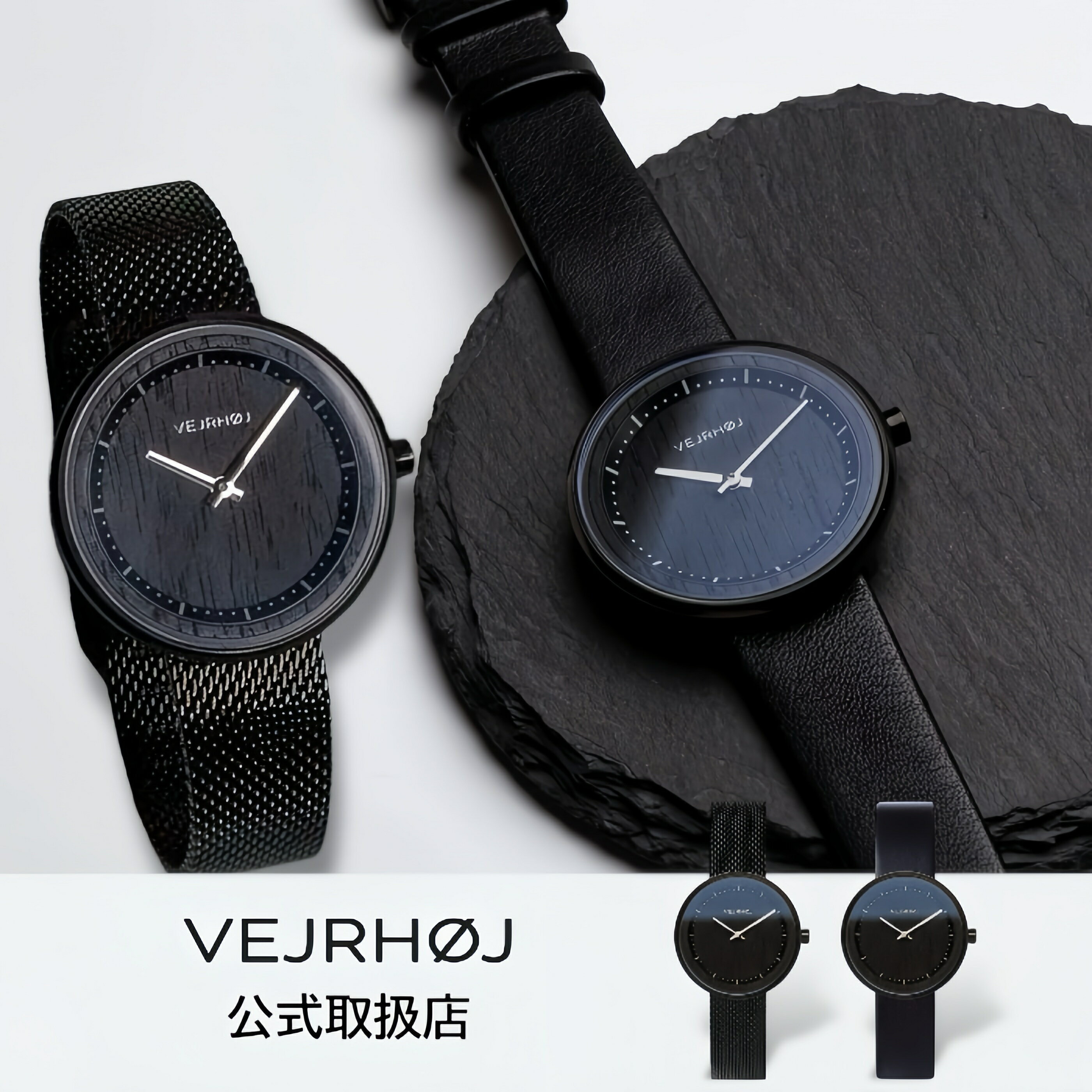 〈選べる2タイプ〉正規品 VEJRHOJ ヴェアホイ 木製 腕時計 レディース Petite BLACK 34mm ペティット ブラック ウォールナット クルミの木(レザーベルト|メッシュベルト)