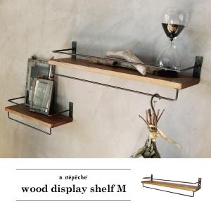 ウッドディスプレイシェルフMサイズ 『壁面 装飾 DIY 無垢材 パイン材 シェルフ 棚 アイアン おしゃれ カフェ ショップ ウォールシェルフ フック バー付き』