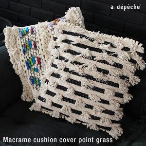 クッション 『マクラメ クッションカバー ポイントグラス』 おしゃれ 45×45cm フリンジ モノトーン コットン 白黒 リビング インテリア 寝室 モダン