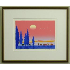 風水開運版画 Y39 夕やけ・九頭馬 吉岡浩太郎
