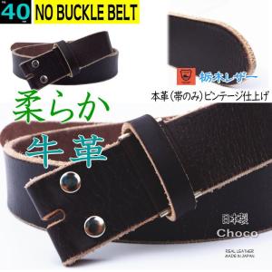 バックルなし ベルト メンズ 本革 一枚革 40ミリ幅 ビンテージモデル チョコ 濃茶 日本製 栃木レザー バックル交換 替えベルト