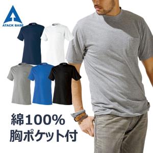 作業服 作業着 Tシャツ メンズ 綿100% 長袖 シャツ ローネック 春 夏 秋 冬 大きいサイズ 3L 4L 5L 胸ポケット 通年 無地 7070-15 紺 黒 白 青 アタックベース
