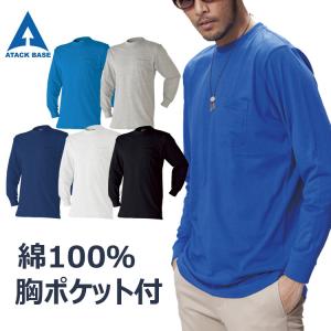 作業服 Tシャツ 作業着 綿100% メンズ 長袖 春 夏 秋 冬 大きいサイズ 3L 4L 5L 胸ポケット 6060-15 年間定番 無地 白 黒 紺 青 安い アタックベース