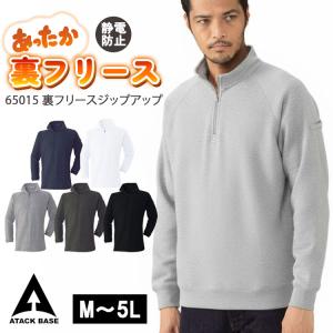 作業服 メンズ 冬 裏フリース 長袖 シャツ 作業着 ジップアップ 650-15 大きいサイズ 無地 暖かい 袖ペン差し 制電防止加工 アタックベース