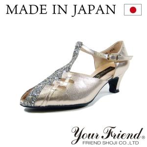 社交ダンスシューズ/女性兼用【アウトレット/返品交換不可】【ベージュメタリック】【外反母趾対応】【日本製/本革/3.5cmヒール】【ピアノ/演奏/合唱】
