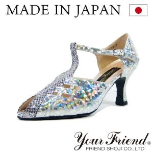 社交ダンスシューズ 女性兼用シューズ [モダン&ラテン] FK-FS7030-DM 【ダイヤモンドシルバーMラメ】【PRO】【日本製】【本革】【7cmヒール】