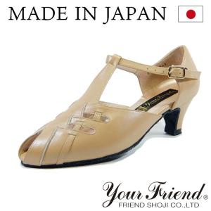 ステージシューズ ダンスシューズ【日本製】女性モダンシューズ ベルト付き【ベージュ】【本革】【5.5cmヒール】【舞台】【納期1〜2ヶ月】
