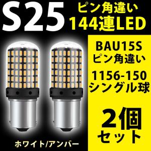 S25 LEDバルブ BAU15S ピン角違い 爆光144連SMD 抵抗内蔵 シングル球 12V 24V トラックにも使える ウインカーバルブ アンバー ホワイト 1156