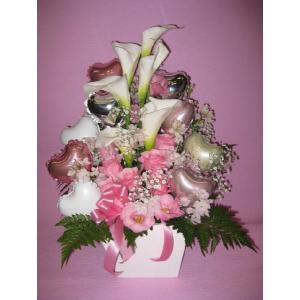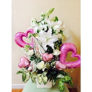 開店祝い バルーン生花電報カサブランカ ピンク A-023