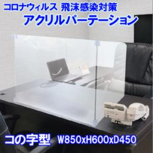 飛沫防止 パーテーション アクリル コロナ 抗菌 850x600x450mm コの字型 アクリル板 コロナ対策 パーティション 衝立 飲食店 オフィス 受付