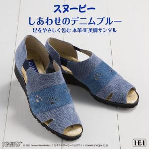 スヌーピー しあわせのデニムブルー 足をやさしく包む 本革4E美脚サンダル