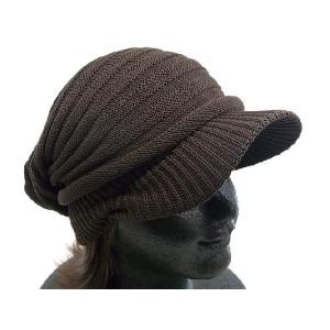 ニットキャップ ブラウン コットン混 メンズ レディース つば付きニット帽 リブ編み 帽子 茶 ニットキャスケット
