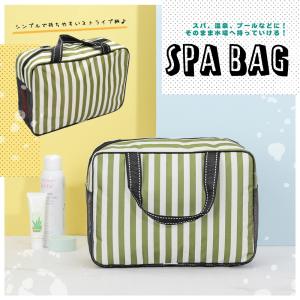 スパバッグ ストライプ プールバッグ ビーチバッグ 温泉バッグ 防水バッグ 旅行用収納 グリーン 温泉 バス 風呂 ポーチ