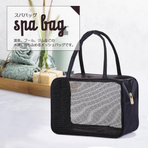 スパバッグ メッシュ シンプル ブラック スパバッグ バスバッグ 旅行 海水浴用具入れ 収納功能 軽量 速乾